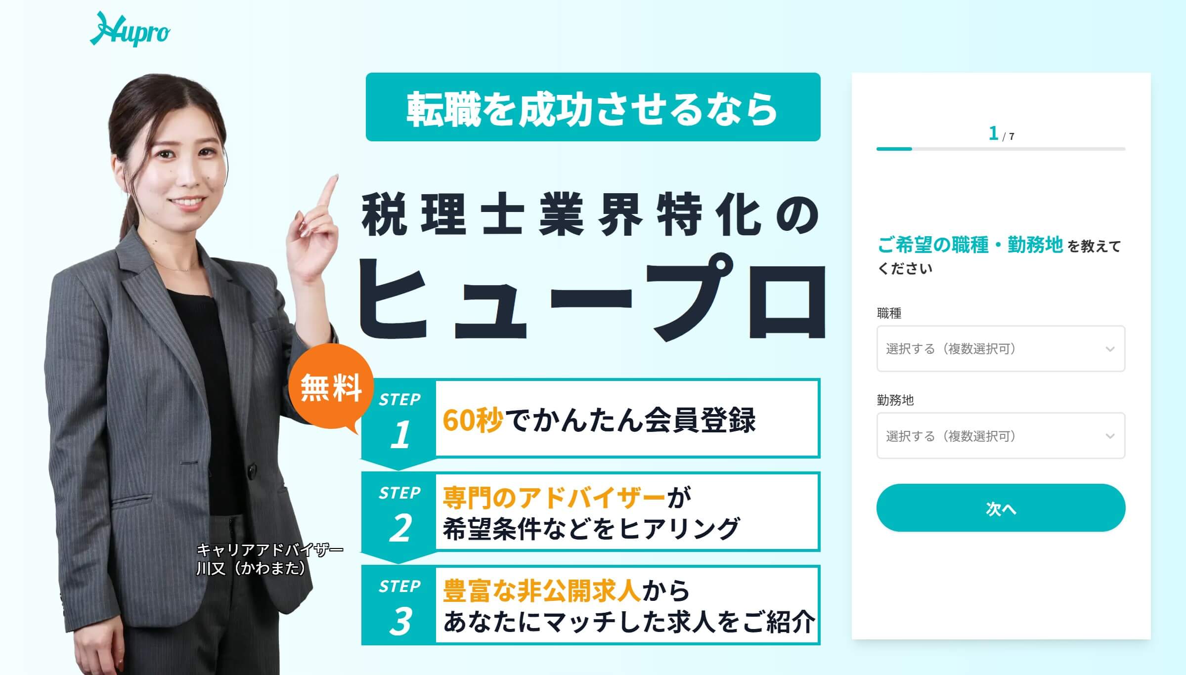 情報力・専門力で税理士事務所転職を徹底サポートしてくれるのが『ヒュープロ』です。