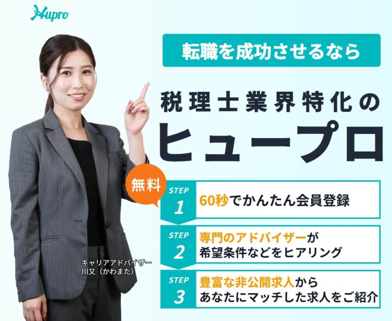 Hupro(以下、ヒュープロ)は、税理士事務所をふくめた税務部門・士業に特化した転職エージェント。だから税理士事務所転職にも強さを発揮します。